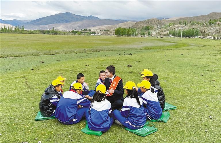 日前,曲松縣人民檢察院的檢察官在下落國家濕地公園舉行“法治小課堂”,為學(xué)生沉浸式講授濕地保護(hù)領(lǐng)域公益訴訟典型案件及政策法規(guī)。記者 丹增平措 攝