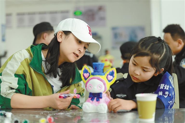 圖為在親子互動(dòng)環(huán)節(jié),警娃和她的母親在用心涂畫(huà)石膏玩偶。通訊員 魏東升 攝