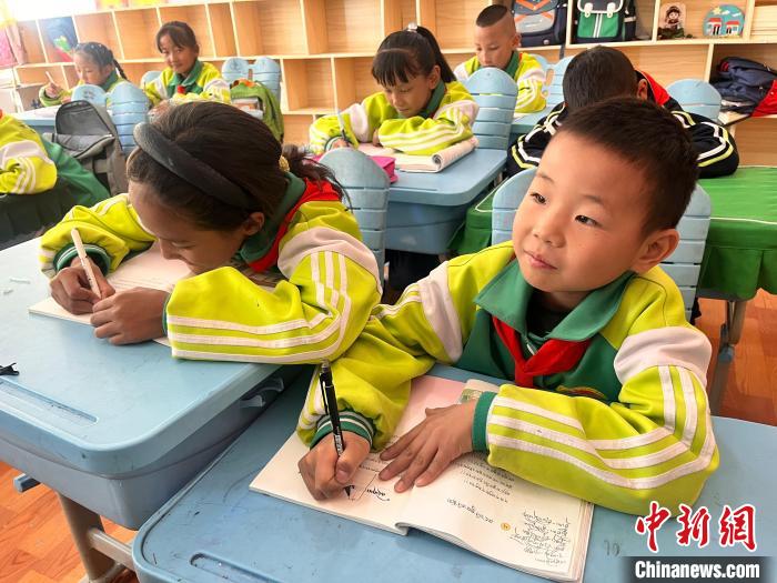 與此同時(shí),四年級(jí)2班的漢族學(xué)生劉念恩正在上藏語(yǔ)文課,他抄寫有些慢,同桌的女生立刻用筆幫他找到對(duì)照位置。“我們班只有我一個(gè)漢族,我也要上藏語(yǔ)文課,同學(xué)們和我關(guān)系非常好,我們經(jīng)常一起踢足球。”劉念恩說(shuō)。