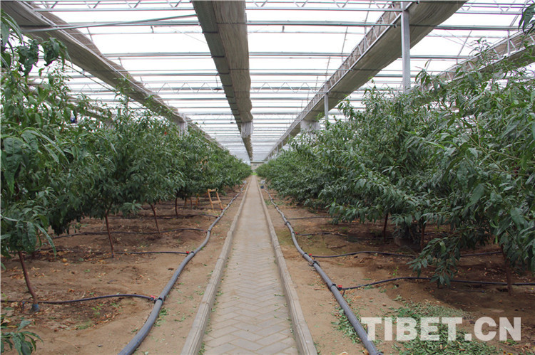 在高原上栽好一棵桃樹需要傾注更多的心血。經(jīng)過大棚的中控室,王榮華說:“這里晝夜溫差大、紫外線強(qiáng),冬天的時(shí)候還要澆凍水、拉膜蓋土、給樹打防凍液,在高原發(fā)展果樹種植困難不少。不同于內(nèi)地的桃樹,在這里快4年了,露天的桃樹只長(zhǎng)高兩三米。”說到這里,他不由感慨科技種植的力量:“大棚里的桃樹一年就長(zhǎng)到3米多高,并且掛果了?;叵?017年時(shí),露天種下的桃樹只有手指粗細(xì),如今長(zhǎng)勢(shì)這么好,真有點(diǎn)不可思議。”