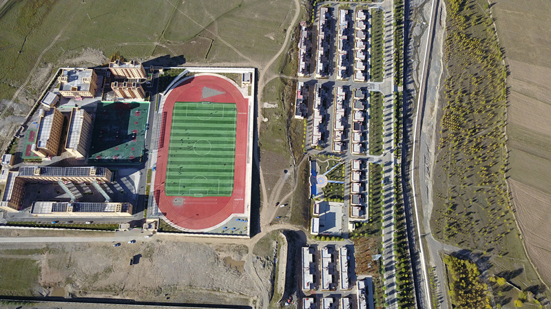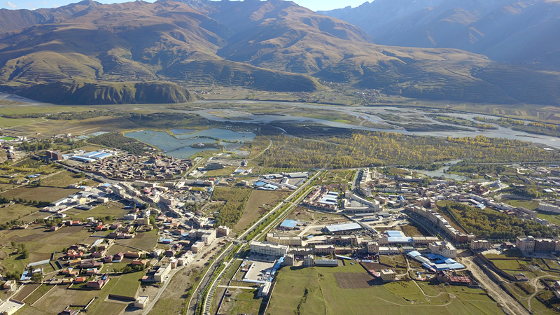 在甘孜州甘孜縣吉絨隆溝易地扶貧安置點,旁邊的十八軍窯洞遺址群展現(xiàn)著這里的紅色血脈。遠(yuǎn)處雪山座座相連,不遠(yuǎn)處縣城邊雅礱江河谷地帶,景色醉人。
