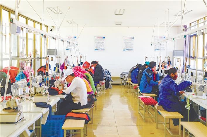 西藏阿里地區(qū)噶爾縣獅泉河鎮(zhèn)康樂新居是由5個縣區(qū)的易地扶貧搬遷戶組成的社區(qū),共714戶3152人。為鞏固脫貧攻堅(jiān)成果,方便農(nóng)牧民群眾就近就便就業(yè),增加居民收入,2017年開始,這里成立了服裝、地毯加工廠,搬遷后的農(nóng)牧民群眾既掌握了技能,也改善了生活條件。