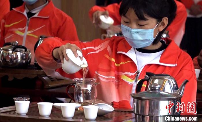 圖為11月19日,西藏林芝市職業(yè)技術(shù)學(xué)校學(xué)生學(xué)習(xí)茶藝。中新社記者 貢桑拉姆 攝