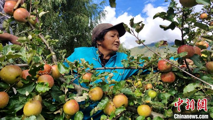 圖為10月6日,西藏林芝市米林縣參與種植蘋(píng)果的農(nóng)民采摘蘋(píng)果。中新社記者 貢桑拉姆 攝