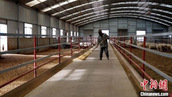 圖為放牧員扎布拉正在打掃羊棚衛(wèi)生。 李雋 攝