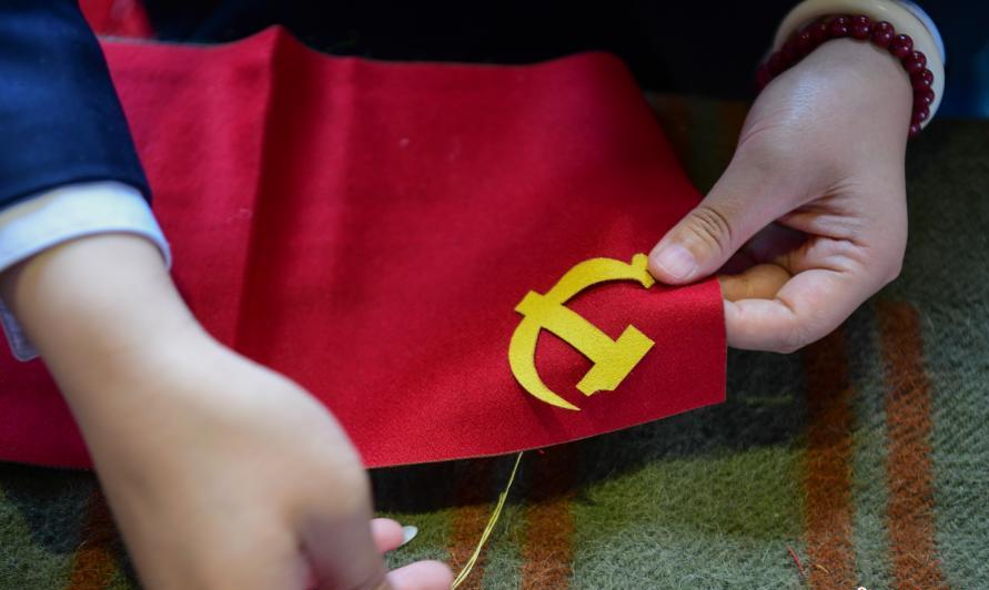 西藏民眾縫制黨旗慶祝建黨百年