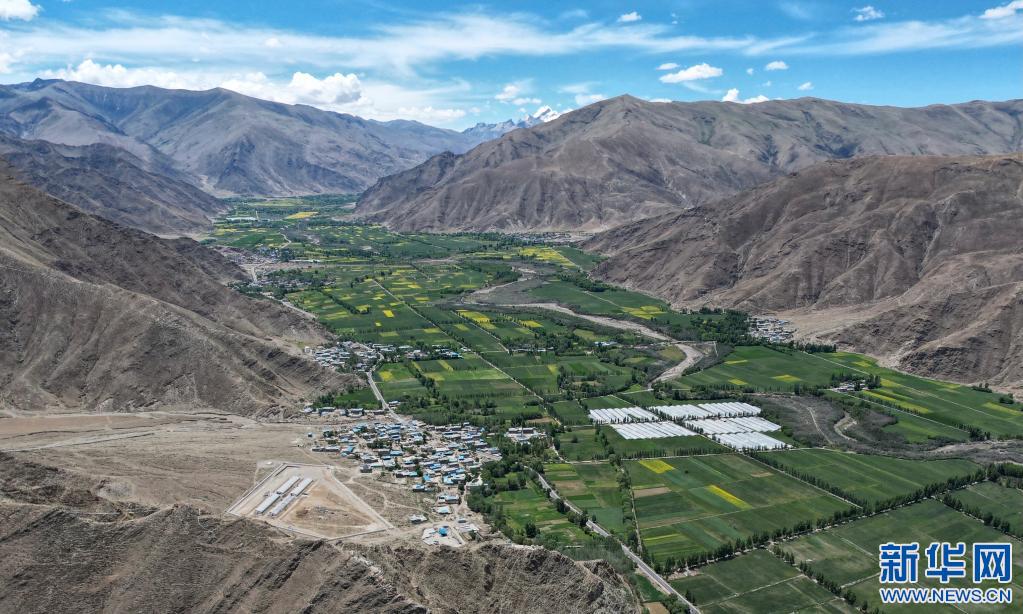 這是西藏山南市乃東區(qū)的農(nóng)田(無人機(jī)照片,6月24日攝)。新華社記者 司源 攝