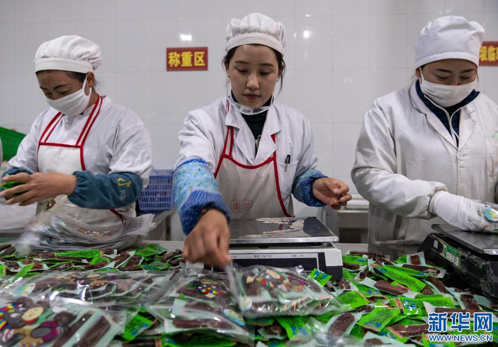 在西藏奇圣土特產(chǎn)品有限公司生產(chǎn)車間內(nèi),工作人員在分裝牦牛肉(2019年12月31日攝)。新華社記者 孫非 攝