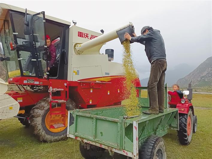 圖為邊壩縣群眾使用機器收割青稞。昌都市農業(yè)農村局提供