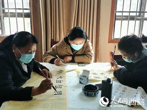 “村里有好多人喜歡書(shū)法,恰好城關(guān)區(qū)開(kāi)展新時(shí)代文明實(shí)踐站·一村一特色文化品牌村(社區(qū))創(chuàng)建活動(dòng),我們就想著往這個(gè)方面打造一下?!辈檀宓谝粫?shū)記土登洛桑介紹。如今,每逢周六,村里會(huì)邀請(qǐng)拉薩市文聯(lián)、拉薩市書(shū)法家協(xié)會(huì)的書(shū)法名家,為熱愛(ài)書(shū)法的村民們傳授技藝。