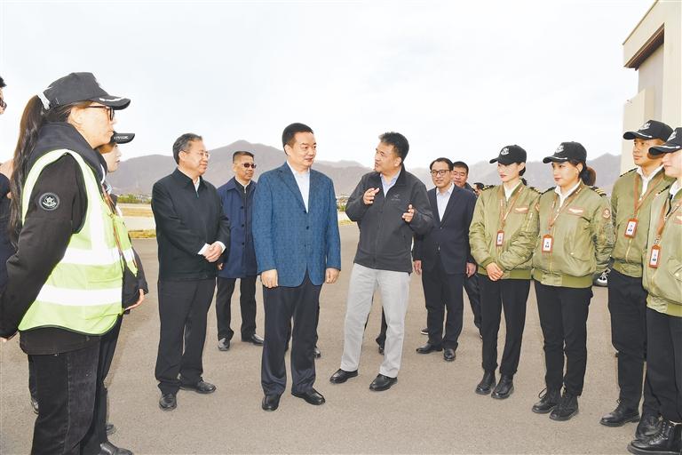 王君正強(qiáng)調(diào),基礎(chǔ)設(shè)施建設(shè)是人民群眾最關(guān)心、最現(xiàn)實(shí)的利益問題,也是推動高質(zhì)量發(fā)展、融入新發(fā)展格局的重要支撐。西藏基礎(chǔ)設(shè)施建設(shè)不僅要算經(jīng)濟(jì)賬,更要算民心賬、政治賬。要落實(shí)落細(xì)中央支持西藏發(fā)展的特殊優(yōu)惠政策,緊緊圍繞“十四五”規(guī)劃落實(shí),把國家支持西藏的各項舉措有效轉(zhuǎn)化為推動長治久安和高質(zhì)量發(fā)展的具體工作,以通用航空產(chǎn)業(yè)建設(shè)為突破口,著力解決交通瓶頸制約問題,夯實(shí)長治久安和高質(zhì)量發(fā)展基礎(chǔ)。要強(qiáng)化基礎(chǔ)設(shè)施建設(shè),突出工作重點(diǎn),加大工作力度,加快工程進(jìn)度,年年見成效,不斷提升基礎(chǔ)設(shè)施建設(shè)水平。要突出產(chǎn)業(yè)重點(diǎn),堅持優(yōu)化一產(chǎn)、壯大二產(chǎn)、提升三產(chǎn),做大做強(qiáng)特色優(yōu)勢產(chǎn)業(yè),積極培育戰(zhàn)略性新興產(chǎn)業(yè),立足西藏特色優(yōu)質(zhì)資源稟賦和比較優(yōu)勢,加快新興產(chǎn)業(yè)培育,大力發(fā)展通用航空產(chǎn)業(yè),以重點(diǎn)突破帶動整體發(fā)展。