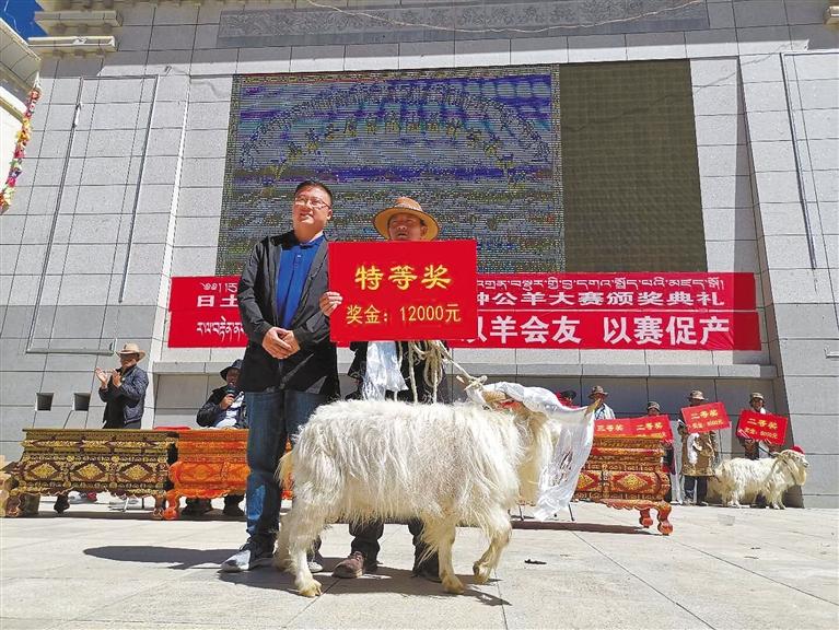圖為日土縣第二屆種公羊大賽頒獎(jiǎng)現(xiàn)場(chǎng)。