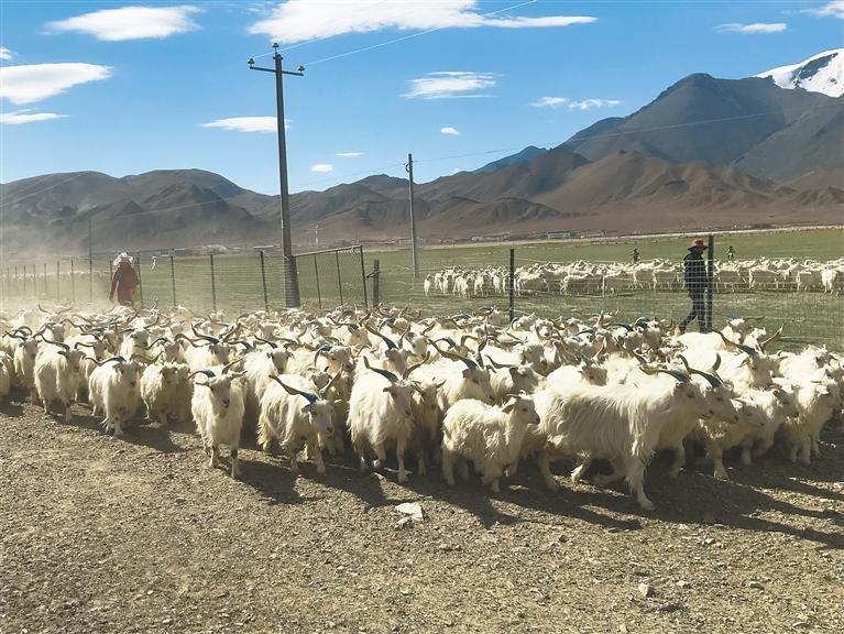 藏西北白絨山羊的核心產(chǎn)區(qū)為阿里地區(qū)日土縣和那曲市尼瑪縣,養(yǎng)羊業(yè)已成為當(dāng)?shù)啬撩裆a(chǎn)生活的重要經(jīng)濟(jì)來(lái)源。數(shù)據(jù)顯示,截至目前,日土縣已累計(jì)向全區(qū)推廣優(yōu)良種羊4萬(wàn)余只,共改良低產(chǎn)羊50萬(wàn)只以上。