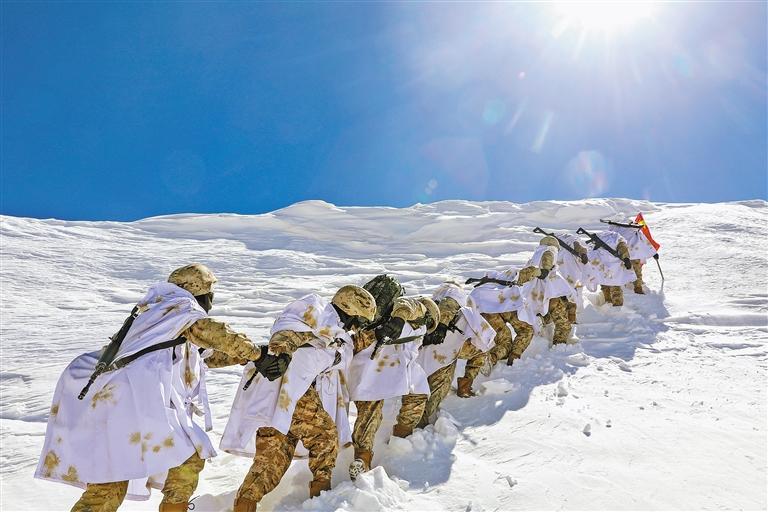 圖為近日,阿里軍分區(qū)某邊防團(tuán)巡邏分隊(duì)按計(jì)劃對(duì)海拔5200多米的某山口實(shí)施巡邏。 記者 次仁平措 通訊員 劉曉東 攝