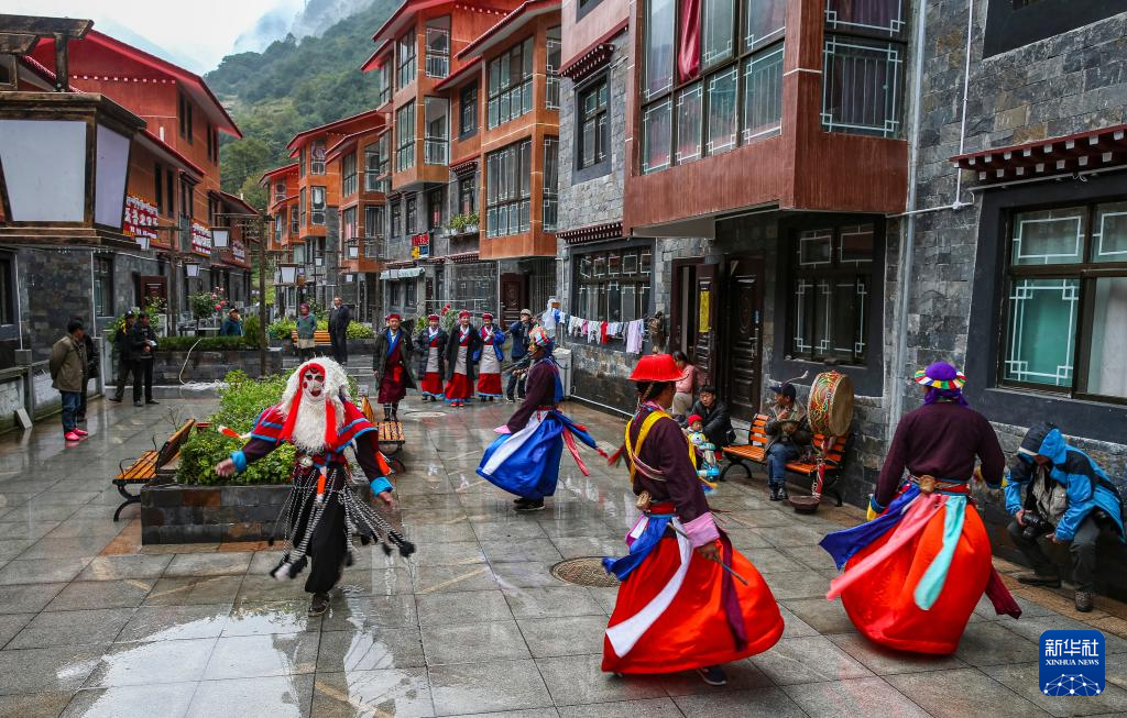 一排排整齊劃一的房屋前,門巴族同胞們正在表演“山南門巴戲”,他們載歌載舞、歡聲笑語。門巴文化獨(dú)具特色,山南門巴戲距今已有200余年歷史,劇情豐富、有聲有色,被列入國家級非物質(zhì)文化遺產(chǎn)名錄。