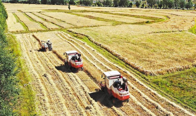“目前,初步測算,小麥產(chǎn)量可以達到每畝960斤以上,青稞達到每畝750斤以上,今年又是一個豐收年!”看著一片片作物收割歸倉,達孜區(qū)農(nóng)業(yè)技術推廣站站長扎西頓珠高興地說。