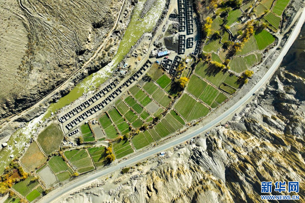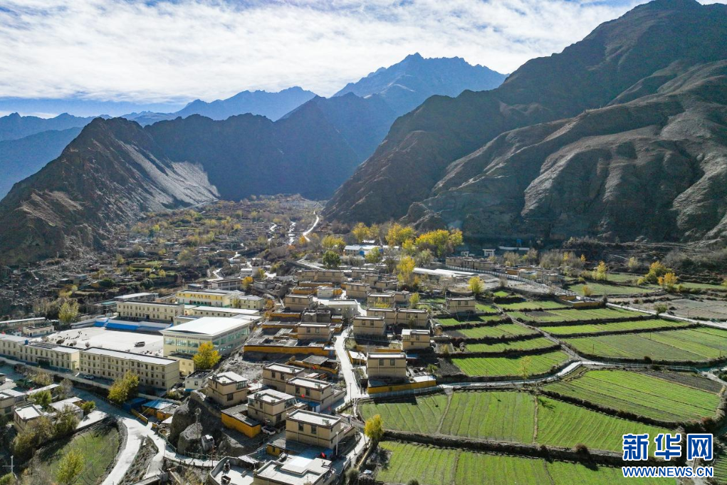 11月16日,西藏隆子縣加玉鄉(xiāng)境內(nèi)拍攝的村莊與農(nóng)田(無(wú)人機(jī)照片)。新華網(wǎng) 柑丹鴦琦 攝