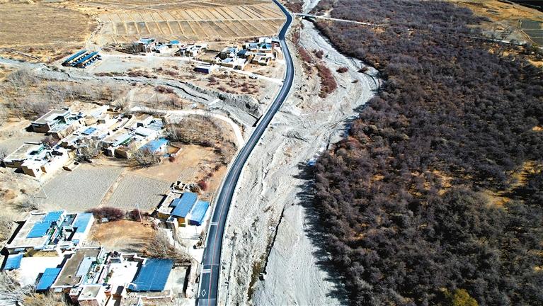 12月12日,山南市瓊結(jié)縣拉玉鄉(xiāng)鄉(xiāng)村旅游公路拓寬工程項(xiàng)目通車儀式在拉玉鄉(xiāng)白那村舉行。該公路長度為10.18公里,路基寬度為7.5米,屬于三級公路,總投資3500萬元。這條鄉(xiāng)村旅游公路的建成通車,不僅方便周邊村民出行,同時對開發(fā)當(dāng)?shù)剜l(xiāng)村旅游資源具有重要價值。 拉玉鄉(xiāng)鄉(xiāng)村旅游公路(無人機(jī)照片)。本報(bào)記者 白瑪澤旺 攝