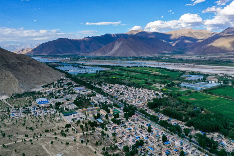 圖為鳥(niǎo)瞰西藏自治區(qū)曲水縣南木鄉(xiāng)江村。田金文攝