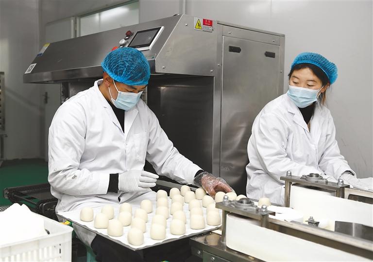 圖為昌都市邊壩縣藏紅麥加工廠的工人在生產(chǎn)線上制作食品。記者 王敏 攝