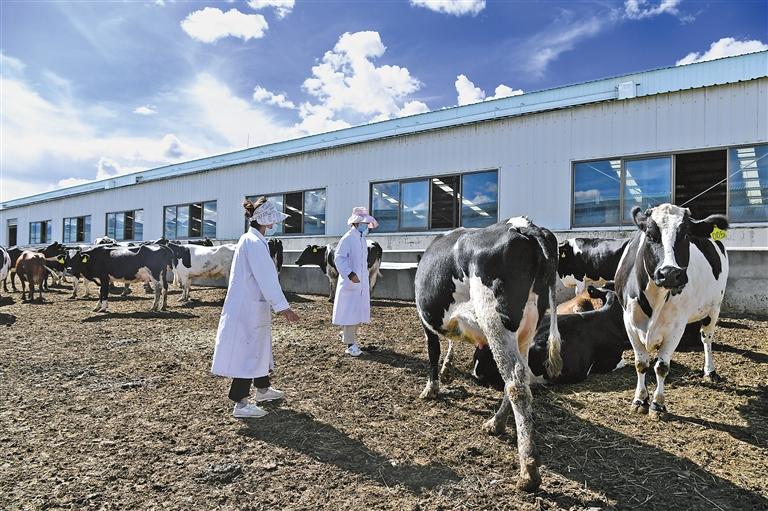 圖為工人在聶雄標(biāo)準(zhǔn)化奶牛養(yǎng)殖場(chǎng)查看奶牛生長(zhǎng)情況。[詳細(xì)]