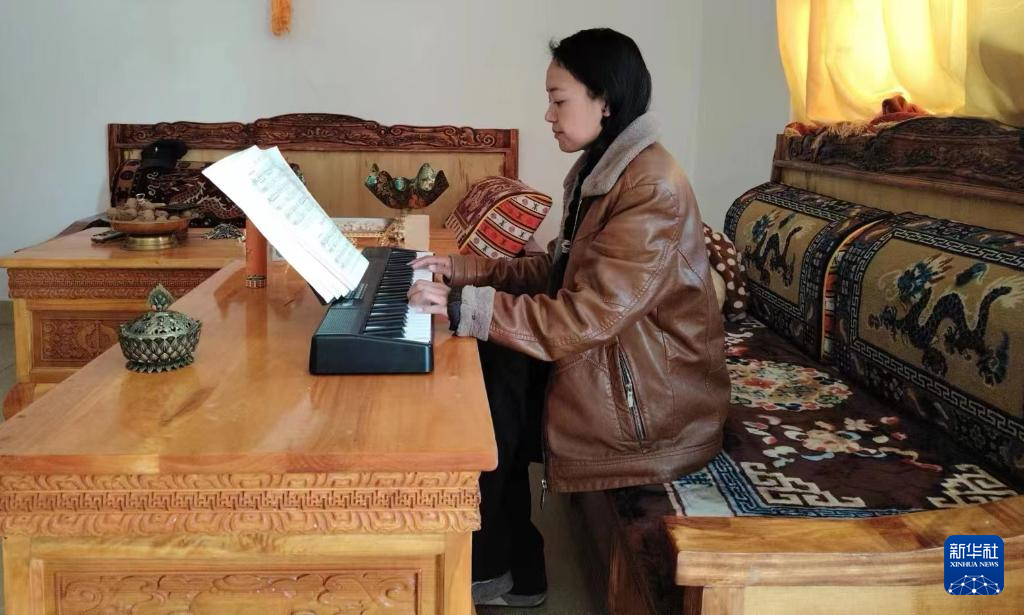 走進西藏林芝市察隅縣上察隅鎮(zhèn)永寧村一戶村民家里,藏式茶幾上的電子琴引人矚目,一旁展開的五線譜本上寫滿了筆記。