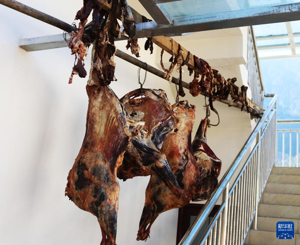 永寧村村民家里掛著風干牛羊肉(1月7日攝)。新華社記者 關明輝 攝