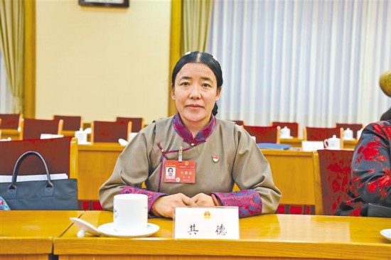 見到全國人大代表、那曲市巴青縣江綿鄉(xiāng)坡榮塘村黨支部書記其德時,她剛接受完媒體同行采訪。