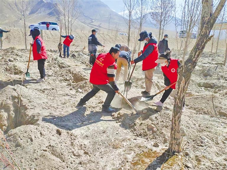 近日,日喀則市江孜縣車仁鄉(xiāng)組織開展“開展植樹造林、共建美麗車仁”為主題的新時代文明實踐活動,以實際行動為生態(tài)環(huán)境再添新綠。活動現(xiàn)場,大家分工明確、配合默契,扶苗、培土、踩實、澆水,合力栽下一棵棵樹苗。經(jīng)過一番辛勤勞動,共種植樹苗700棵。
