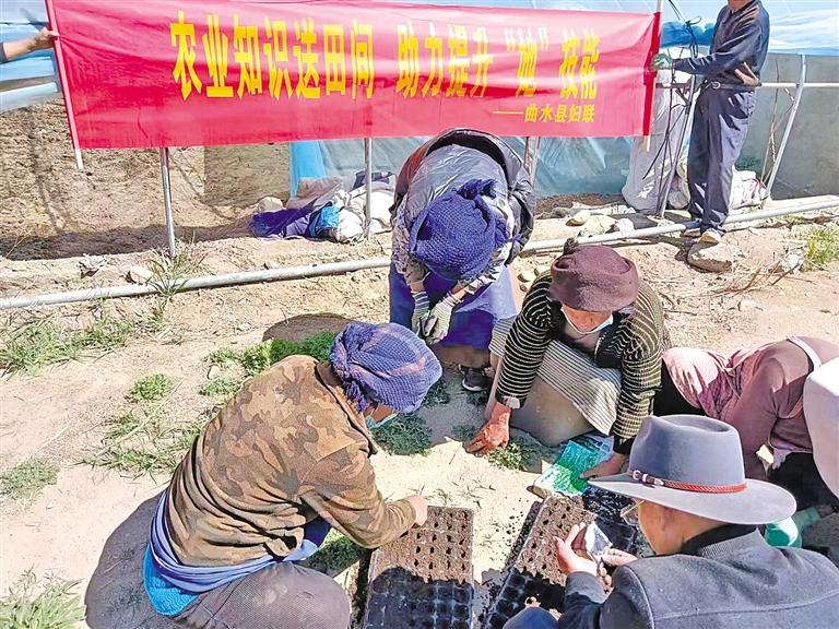拉薩市曲水縣婦聯在前期調研的基礎上,發(fā)現曲水村不少婦女有蔬菜種植意愿后,縣婦聯經多方協(xié)調,邀請南木鄉(xiāng)江村蔬菜種植能手,對18名曲水村婦女進行蔬菜種植技能培訓。參訓的婦女紛紛表示,這種送到家門口的技術培訓進一步提升了蔬菜種植水平,開拓了視野,增強了大家發(fā)展農業(yè)、增加收入的信心。