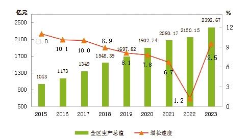 圖1 2015-2023年全區(qū)生產總值及其增長速度