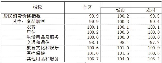 全年全區(qū)居民消費價格比上年下降0.1%,工業(yè)生產者出廠價格上漲1.1%。