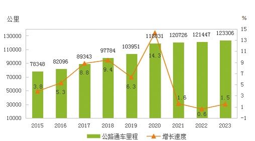 圖8 2015-2023年公路通車里程及其增長速度