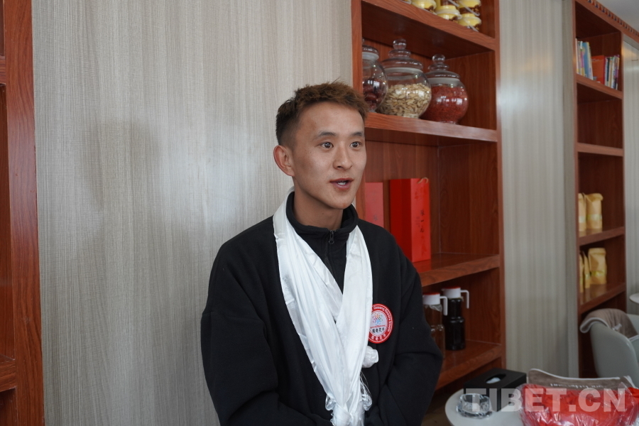 圖為正在接受采訪的格?;ㄩ_(kāi)體驗(yàn)館運(yùn)營(yíng)負(fù)責(zé)人丹增洛色 攝影:張曉琪