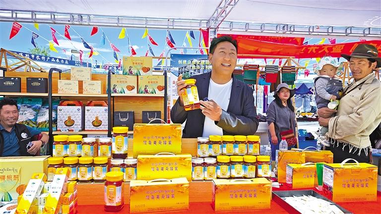 圖為在日喀則高原農(nóng)特產(chǎn)品及尼泊爾特色產(chǎn)品展示展銷活動上,商家在展示自家產(chǎn)品。