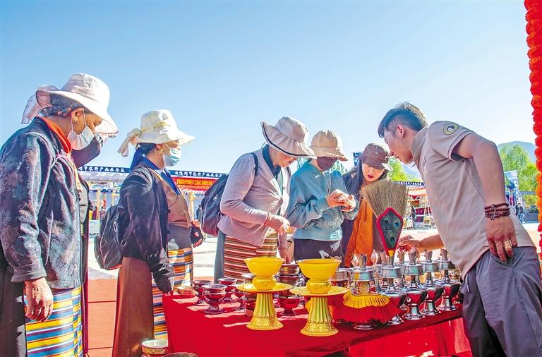 一張艷麗奪目的藏式卡墊、一只美觀透亮的玉石碗、一把精雕細(xì)琢的六弦琴、一杯醇香味濃的雞爪谷酒、一套異域風(fēng)情的尼泊爾服飾、一包沁人心脾的香料……在日喀則高原農(nóng)特產(chǎn)品及尼泊爾特色產(chǎn)品展示展銷活動上,琳瑯滿目的本土優(yōu)質(zhì)農(nóng)特產(chǎn)品與獨具特色的尼泊爾產(chǎn)品,吸引了大量市民游客逛攤選購,一幅繁忙景象。