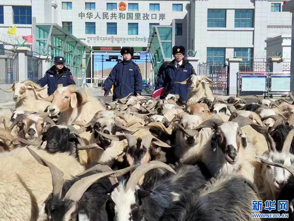 日喀則海關(guān)關(guān)員監(jiān)管活羊出口。(受訪者供圖)