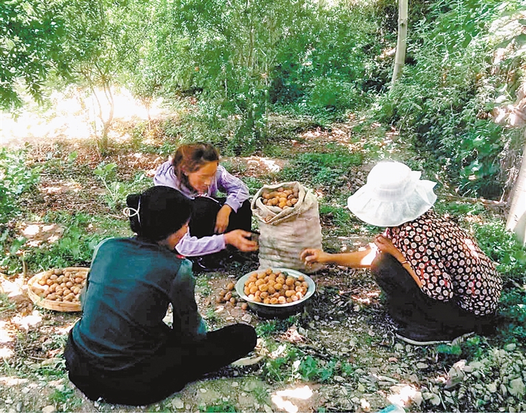 圖為左貢縣村民們正在收核桃。記者 萬(wàn)慧 攝