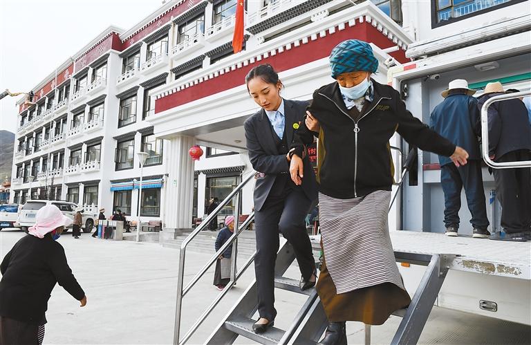 “小心臺階,莫拉(藏語意為‘奶奶’),您是來辦理什么業(yè)務呢?”農(nóng)行山南分行乃東支行的客戶經(jīng)理娜姆措一開口,身邊的社工人員就開始熟練地轉(zhuǎn)述老人的需求,一經(jīng)詢問才得知流動金融服務車并不是第一次開進供養(yǎng)中心。社會福利院院長邊巴卓瑪向記者介紹:“長期以來,農(nóng)行山南分行乃東支行非常關(guān)心特困人員集中供養(yǎng)中心老人的金融服務需求,經(jīng)常以定點定時的方式,到這里為老人現(xiàn)場辦理業(yè)務,宣講金融政策,解答一些個人資金安全方面的問題,為老人提供非常方便、專業(yè)的金融服務。”