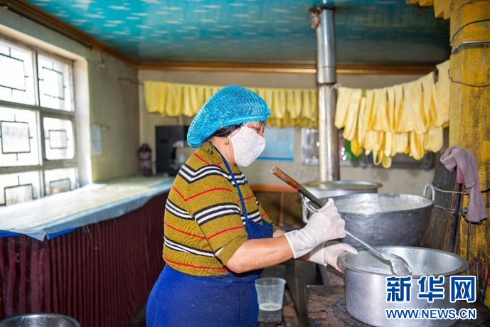 8月21日拍攝的傳統(tǒng)工廠里的工人正在熬煮牛奶。新華網(wǎng) 旦增努布攝