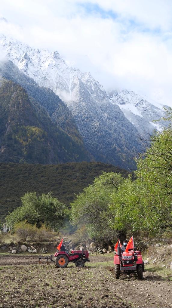 每年10月,是西藏那曲市嘉黎縣尼屋鄉(xiāng)播種冬小麥的時節(jié)。忠玉村村民索朗益西和鄉(xiāng)親們開著拖拉機翻土備耕。