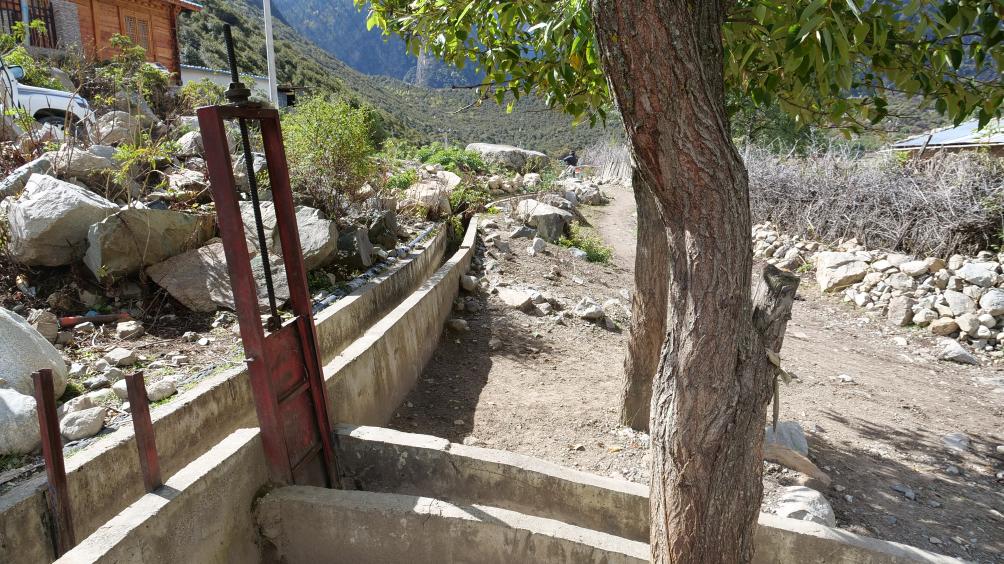 當(dāng)?shù)毓喔人词茄┥饺谒?。尼屋鄉(xiāng)農(nóng)牧綜合服務(wù)中心主任扎西次旺介紹,高標(biāo)準(zhǔn)農(nóng)田建設(shè)前,鄉(xiāng)民一直沿用先民修的老水渠。