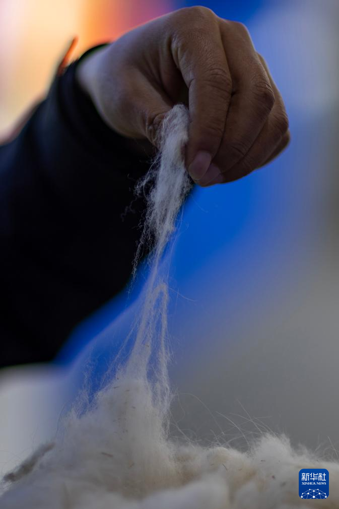 日土縣白絨山羊原種場場長巴久在展示白山羊絨樣品(11月16日攝)。新華社記者 姜帆 攝
