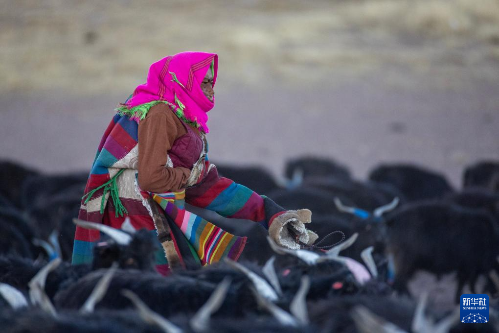 措勤縣紫絨山羊原種場的一位牧工在照看優(yōu)質(zhì)種羊群(11月20日攝)。新華社記者 姜帆 攝