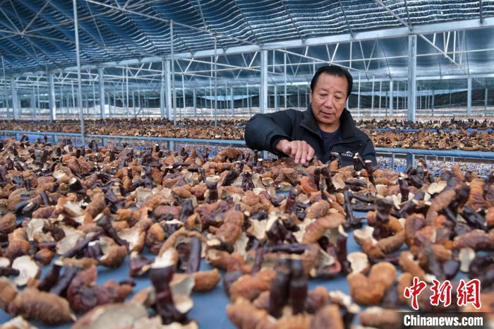 12月10日,西藏林芝米林市米林鎮(zhèn)紅太陽(yáng)科技示范家庭農(nóng)場(chǎng)負(fù)責(zé)人尼瑪查看靈芝風(fēng)干情況。中新社記者 江飛波 攝