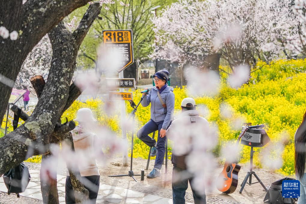 4月2日,游客在林芝市嘎拉村唱歌。新華社記者 丁增尼達(dá) 攝