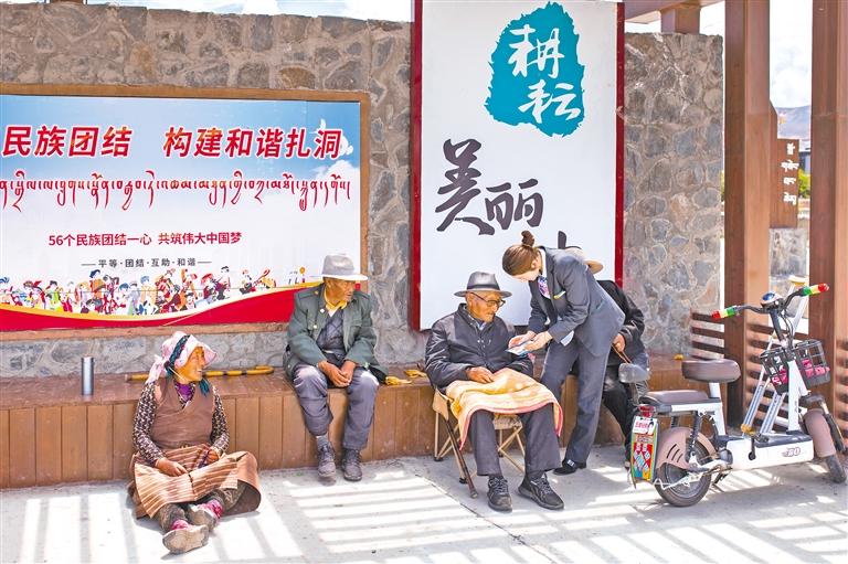 農(nóng)行客戶經(jīng)理在扎洞村向老年客戶宣講金融知識(shí)。記者 丹增平措 攝