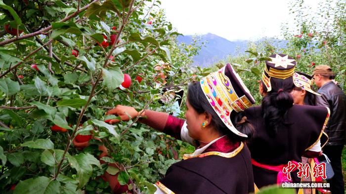 圖為米林農(nóng)民采摘蘋果。米林融媒體中心 供圖