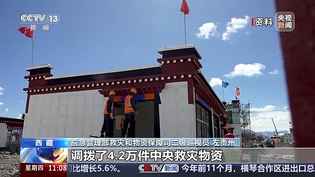 應急管理部救災和物資保障司二級巡視員 左貴州:針對定日地震,國家防減救災委協調下撥了14億中央救災資金,調撥了4.2萬件中央救災物資,并啟動了應急物資保障政社協同機制,調撥一大批生活類的物資,確保受災群眾盡快恢復家園、溫暖過冬。