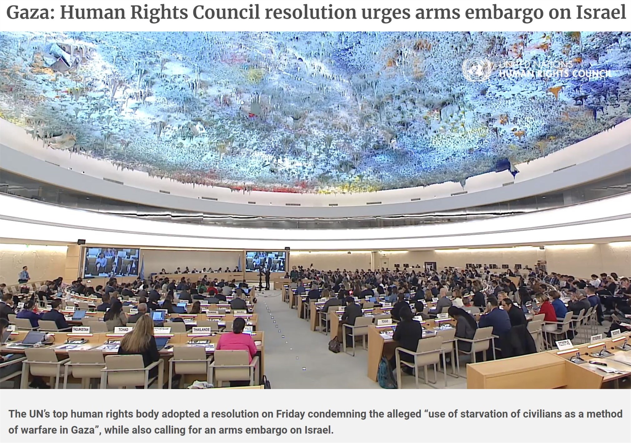 同一天,在日內(nèi)瓦閉幕的聯(lián)合國人權(quán)理事會第55屆會議通過一項(xiàng)決議,對以色列嚴(yán)重侵犯人權(quán)和嚴(yán)重違反國際人道主義法行為的相關(guān)報(bào)告表示關(guān)切。